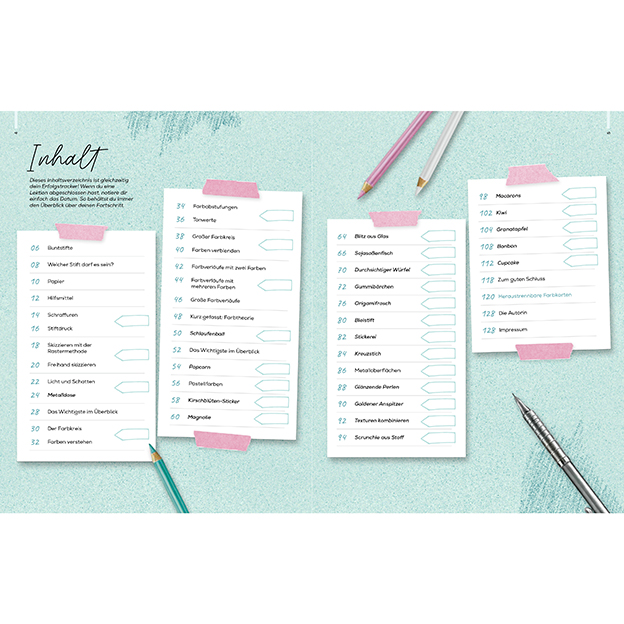 Möglich ist das auch ohne Vorkenntnisse, denn du wirst von Anfang an begleitet: Übersichtlich und effektiv bietet dir das Buch alle wichtigen Komponenten, die du für einen erfolgreichen Start benötigst. Du lernst, was es bei der Wahl von Stift und Papier zu beachten gilt, wie du Farbflächen effektvoll gestaltest oder wie du gekonnt Dreidimensionalität, Licht und Schatten ausarbeiten kannst. Zudem lernst du die Besonderheiten unterschiedlicher Oberflächen und Strukturen kennen. Interaktive Übungen helfen dir dabei, dein neu erlerntes Wissen direkt im Buch anzuwenden und sorgfältig ausgewählte erste Motive sorgen für deine ersten Erfolgserlebnisse. Mit der Checkliste zum Abhaken behältst du zusätzlich den Überblick über deinen Fortschritt.
