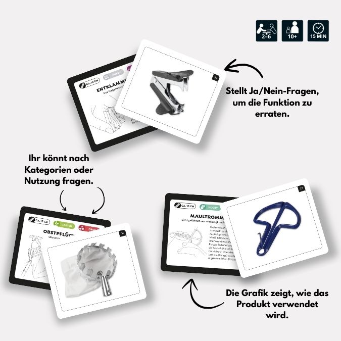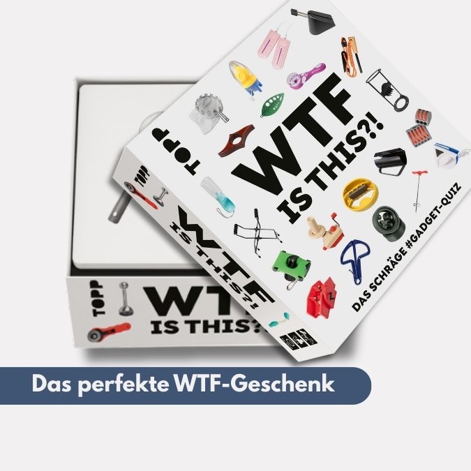 Die Produkte auf den Bildkarten kann man genau so bestellen. Aber wozu braucht man das? ... Und was soll das bitte sein? Ob für Küche, Bad oder für den Partykeller: Im Internet findet man die absurdesten Produkte, deren Nutzen nicht immer sofort zu erkennen ist. Auf insgesamt 100 Bildkarten sind genau solche skurilen Produkte abgebildet und es bleibt nur eine Frage: WTF is this?! Ist das Kunst oder kann das weg? Aberwitziger Ratespaß ist garantiert und eine Idee für's nächste Schrottwichteln ist mit Sicherheit auch dabei!