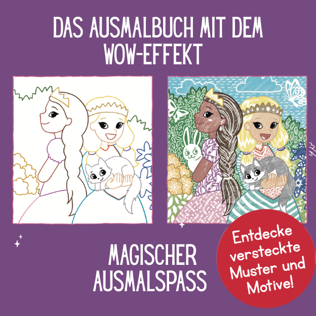 - 24 liebevoll gestaltete Ausmalmotive zum Thema Prinzessinnen